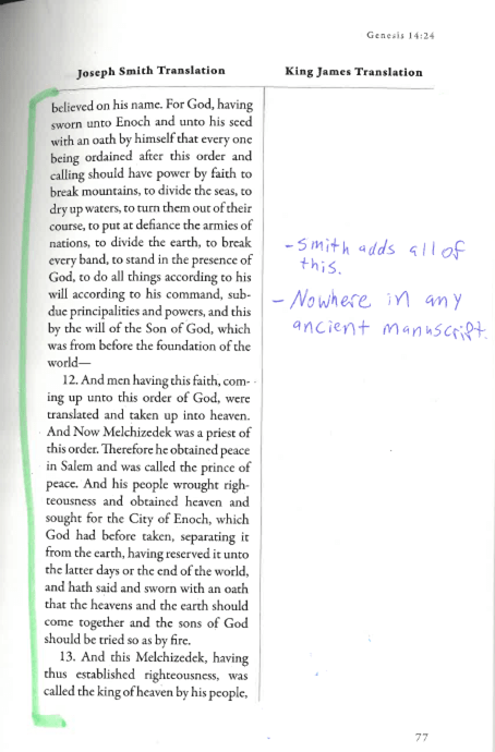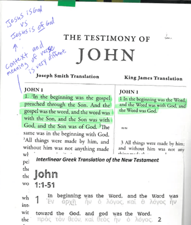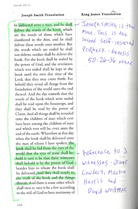 - Notice the green highlighted parts in the JST above. Do you see how they are prophecies specifically related to himself, the book of Mormon and the 3 witnesses to the book of Mormon? It would seem as if Joseph Smith is attempting to smuggle prophecies about his own religion into the Bible.