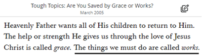 In September, 2013, General Authority Brad Wilcox gave a talk called, “His Grace Is Sufficient.” But the one thing he never tells us is this: What exactly is God’s grace sufficient for? The impression he leaves us with is this: The grace of God enables/empowers us to do the required works, receive the essential ordinances and keep the required covenants in order to qualify for eternal life. You do the works and keep your covenants, then you will receive eternal life and live in the presence of God only if you faithfully do so. One way to summarize this is: You do the works, receive the ordinances, and make the covenants in order to gain access to God’s grace, then God’s grace enables you to live in his presence.