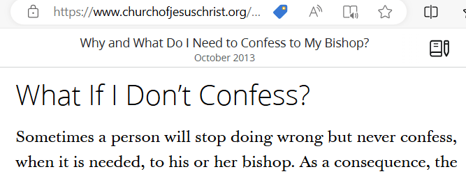 In another article from the LDS Church website, it says, “Why and What do I need to confess to my bishop?” It states that “Some mistakes, especially those requiring immorality require confession to the bishop before you can receive the Lord’s forgiveness.”